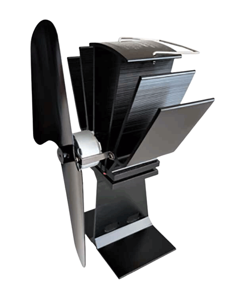 The thermal fan is designed to stand on the top flat surface of a fireplace and circulate warm air throughout the room. It needs no external power, cords or batteries and creates its own electricity using the heat of the fireplace. The fan automatically adjusts speed with the temperature of the fireplace. It runs faster as the fire heats up, and automatically slows down and stops as the fire burns down and cools.
